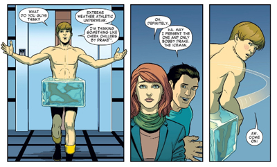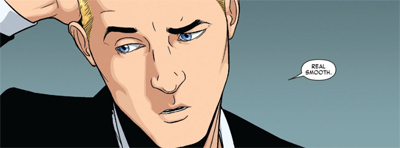 (Also worthy of note is the way that McKelvie avoids pitfalls like the male gaze or other issues around the portrayal of female characters. The closest that Season One comes to objectifying its characters is in the presentation of Warren Worthington as a bit of female eye-candy. There’s absolutely nothing wrong with this; indeed, it’s refreshing to read a comic where the sole example of a character being sexualised is one – very – quick shot of a male character.)