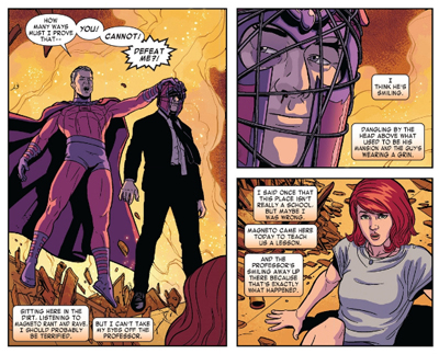 (Hopeless doesn’t need to incorporate mind-wipes of the students or the death of any children under his care in order to reinforce the idea that Charles Xavier is a rather creepy old man. Instead, Hopeless just lays out everything that Charles Xavier does, and approaches it in a rather level-handed fashion. This isn’t character assassination or retroactive continuity at work. This is simply engaging with the version of Charles Xavier created by Stan Lee and Jack Kirby.)
