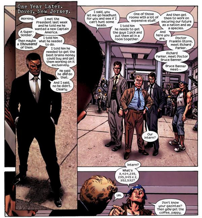 At the same time, Bendis makes a point that superheroes are still inherently optimistic creations. Even if they are occasionally tied to (or anchored in) disturbing concepts, they do represent the very highest ideals. After all, even if Captain America is a weapon of mass destruction, he’s a weapon of mass destruction that has a conscience. He is distinct from Erskine’s cynicism and abuses, even if he was spawned from them.