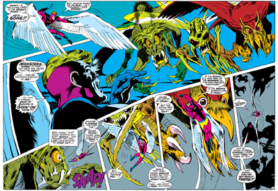 If Thomas and Adams’ work on X-Men can be said to have an over-arching theme, there’s a sense that they are dragging the book through all manner of science-fantasy work – trying to engage rather directly with the spirit of sixties science-fiction and horror. The Sentinels are defeated by logic rather than force, in much the same way that Captain Kirk dealt with the androids in I, Mudd. The team find themselves fighting resurrected Egyptian Pharaohs, killer robots, vampire pterodactyls and mysterious planets.