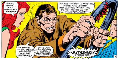 Thomas and Adams also make an explicit comparison between Xavier and Magneto. To be fair, the two characters had been juxtaposed since the early days of the comic – what is Magneto’s “Brotherhood of Evil Mutants” but his own answer to the X-Men. However, Thomas and Adams make it explicit. In Strangers… in a Savage Land!, it is revealed that Magneto has been hiding undercover, much like Professor Xavier would be revealed to be doing in later issues.