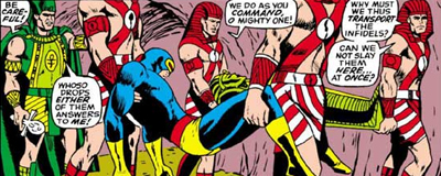 (That connection is arguably reinforced by the suggestion that the radiation that causes mutation is generated by the sun. As Thomas and Adams’ first arc points out, the Egyptian religion was built around the worship of Ra, the sun god. In a way, then, Roy Thomas seems to make a subtle – and clever – connection between ancient religious beliefs and hokey modern science-fiction. Although he doesn’t capitalise on it as much as he might, this overlap is something that later X-Men writers would play with.)