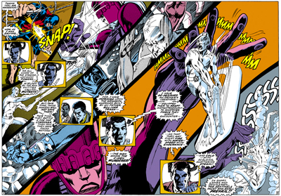 There are some absolutely wonderful compositions in these issues. Particularly noteworthy is Adams’ artwork on Mission: Murder, a comic book issue that inter-spaces media commentary on the issue of mutants with the story’s action sequences. It’s a rather brilliant narrative technique, delivering opinion and exposition over fight scenes, and Adams integrates the two rather perfectly. There’s a wonderful flow to Adams’ work.