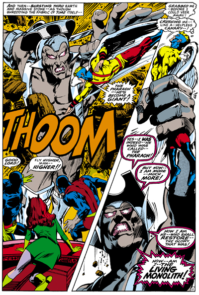 Thomas hits on a couple of ideas that would be developed by the franchise in the years ahead. As well as cementing the link between the mutants and atomic radiation, his first story arc – one started by writer Arnold Drake – adds an element of mysticism to the mutants. Featuring a visit to Egypt and pitting the X-Men against a “latter-day Pharaoh” who is also a mutant, Thomas forges an interesting connection. Although the Living Pharaoh was a modern archaeologist driven insane with power, it’s hard not to look at this story as the genesis of later stories based around Apocalypse’s origins in Ancient Egypt.