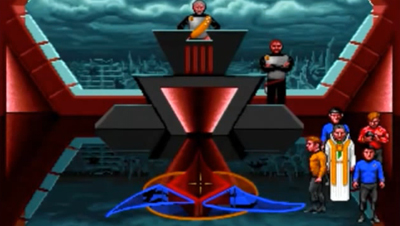 The format of the video game should be familiar to anybody with a passing knowledge of nineties computer games. The game incorporates a flight and combat simulator, the character and conversation choice aspects of a role-playing game, and a puzzle-solving point-and-click adventure. There’s a lot of logic and reason involved in Star Trek: The 25th Anniversary, with a minimum of space combat. Most of the plot is advanced by conversations the player makes as Kirk, or logic puzzles solved.