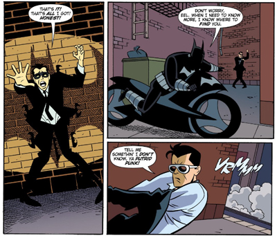 When Oswald Copplepot declares him public enemy number one, he aggressive flouts law and order in Gotham. He installs his own security parametre at Gotham, completely ignoring that he is meddling with a federal facility. He struggles to work within Nightwing’s methods in Bludhaven. He is willing to exploit Harvey Dent’s psychosis for is own ends, wedging the coin “good side up” to assist him during an assault on Arkham. He is ruthlessly pragmatic, and utterly unwilling to listen to anybody else.