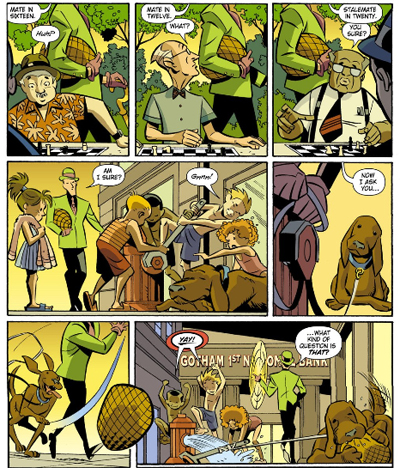None of these changes are truly irreversible. None of these characters are pushed to a point where something resembling the original status quo would be impossible. The Riddle could come out if his coma. Ra’s could break out of jail and find a Lazarus Pit. This comes with the territory for a tie-in comic – after all, if Harley and Ivy suddenly appeared on a cameo in Justice League, Templeton and Slott would have to explain it somehow.