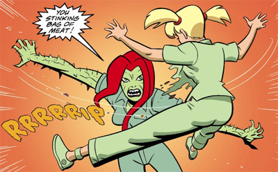 Yep. But, at the same time, I couldn’t hand either comic to an eight- or nine-year-old niece or nephew wanting to try comic books. (I think twelve is really the ideal age for those, if only because that’s when I read them.) I’m not really advocating for censorship (after all, paper and ink are not highly-restricted resources – you can have both all-ages books and unrestricted books coexisting), but I do think it makes sense for comics to be as accessible as possible. After all, you need to bring in new fans to keep the medium alive.