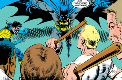 These are all comic book tropes, and they’re all forgiveable because this is a comic book story. Investigating Bruce’s arrest, Nightwing concedes that his mentor is not the most healthy of individuals. “Sure, Batman walks close to the edge,” he reflects. “There have been times when even I thought he was crazy.” And maybe he is a little bit. But that doesn’t make him evil, or undermine the heroism that he does around Gotham.
