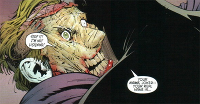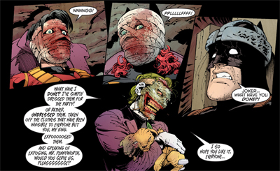The Joker references his earlier crimes as if to assert that they still exist in the wake of Flashpoint, to validate his own history. He wants assurances that everything will be the same as it was – he wants to know that the Batman he is facing now is the same Batman that always faced. While Morrison’s “clown at midnight” was an infinitely versatile character capable of adapting with (and to) the times, the Joker presented in Death of the Family is a character confronted with his own redundancy.