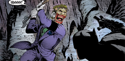 The Joker becomes an almost pathetic figure, a tragic failure. He isn’t an all-powerful supervillain who knows some horrible truth about the universe, he’s a sad man who cannot even confront the realities of the world around him. Recalling one encounter between Bruce Wayne and the Joker, Batman recalls, “It was then that I knew — knew that he didn’t care who I was beneath the mask, and never would. Knew that he was incapable of even broaching the subject of Bruce Wayne. It would ruin his fun.”