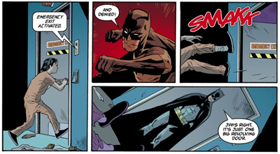 The idea that the staff and patients all blame Jonathan Crane is one example of the book’s grim humour, as is a nice inside joke about Sean Young’s terrifyingly insane attempt to land the part of Catwoman in Batman Returns. “Remember that time she showed up here in a Catwoman outfit?” one guard asks another. Warren White’s delightfully jerkish behaviour to the other inmates – before he realises what awaits him – seems particularly dark.