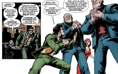 That said, it wouldn’t be a Grant Morrison story if it were all doom and gloom. While there is a sense that Batman may have limits on what he can be – and there are tragic consequences when he tries to transcend those limits – there is also a sense that Batman does make the world a better place in smaller (and no less meaningful) ways. Ellie, the prostitute assisted by Batman early in Morrison’s run, pops up again during an assault on Wayne Enterprises.