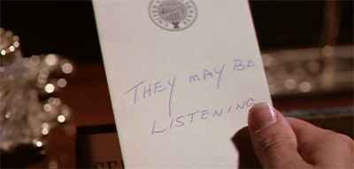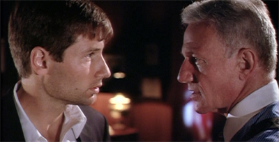 Mulder’s opening monologue is the lament of a generation disillusioned by a government that has scrapped the space-age idealism of Kennedy’s new frontier. Mankind no longer reaches for the heavens; we’ve grown to accept mundane realities. The episode’s opening scenes both feature reels of tape recordings, the difference in context effectively underscoring the gap between that lost idealism and the cynical modern world. Separated by the opening credits, the beacon enthusiastically inviting aliens to Earth is replaced with wiretaps of sleazy crooks talking about strip clubs.