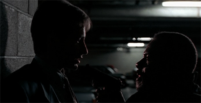 He tempts Mulder with the promise of sending the men who abducted Scully to their deaths at Mulder’s hand. It’s murder, as much as X couches it in euphamism. “You will be waiting,” X explains the plan. “To defend yourself with terminal intensity.” Mulder has no way of knowing whether these men were actually involved in the abduction. It just offers him a way to feel better about himself. Even as he offers to help Mulder murder the men who abducted Scully, X’ primary concern remains his own security. “After tonight, we cannot make contact for several weeks.”