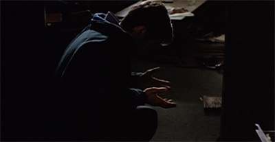 If X is a version of Mulder consumed by paranoia and anger, then the Cigarette-Smoking Man is a version of Mulder who has given up everything in pursuit of his goals. The show consciously juxtaposes the two. Mulder confronts the Cigarette-Smoking Man watch television alone in an empty apartment, just as Mulder had been watching television alone in his empty apartment when he got the call about Scully’s return.