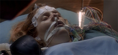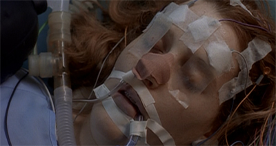 In this episode, Mulder must choose between traditionally masculine ratiocinative control mechanisms – gun, revenge, death – and the feminine strength of communicated emotion and self-in-relation. When Mulder returns to his apartment, his home has been invaded, penetrated, in effect raped; by choosing to go to Scully, he has left himself both physically and emotionally vulnerable. Craig Miller and John Thorne point out the oddity that Scully’s brothers are not at the scene of her expected death. However, their absence is appropriate for the subtext of the episode: in the penultimate scene, when Scully emerges from her coma, Mulder enters a place of women – Scully, her mother, and her sister.