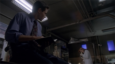 We see very little of Chaney, but what we see makes a number of obvious connections to Mulder. When B.J. attacks Mulder, she sees flashes of Chaney’s face. The exhumation of his body uncovers a journal kept by Chaney. “One must wonder how these monsters are created,” it suggests. “Did their home life mold them into creatures that must maim and kill, or are they demons from birth?” It appears Chaney even got his version of Mulder’s pretentious closing monologues.