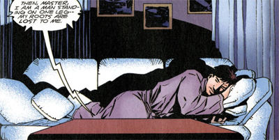The theme even comes baked into the Kung-Fu re-run that is playing in the background as Mulder sleeps on his couch towards the start of the comic – another example of how well Petrucha captures the tone of the series. (Although it’s unlikely that Topps would have allowed the comic to suggest what else Mulder might be watching.) “Master,” one voice remarks, “we are taught that to know ourselves, we must know our past.” Dismembrance of Things Past suggests that a malleable past leads to erosion and decay and loss.