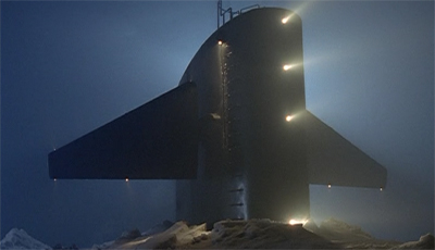 Towards the end of End Game, Mulder stumbles across a nuclear submarine that was attacked in the episode’s teaser. The craft was disabled by a strange craft it picked up in the ocean. Now, following a mysterious alien figure across the world in a quest to find his sister, Mulder approaches the location of the lost American submarine. As he does, he notices the submarine’s coning tower, bursting through the ice.