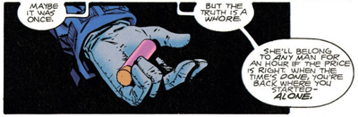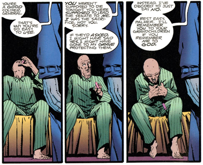 The implication is a delightfully wry twist on the show’s central premise. “The truth is out there,” the credits assured viewers at the start of almost every episode. However, that presupposes that the truth exists as an objective object, independent of individual perceptions of it. “The truth is a whore,” General Palmer reflects early in the issue. “She’ll belong to any man for an hour if the price is right. When the time’s done, you’re back where you started – alone.”