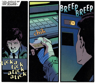 Here, reference is made to “Project Vanishing Point.” In Firebird, characters will reference “Project Aquarius.” Although Petrucha doesn’t embrace and acknowledge the sheer audacity of introducing his own other secret world-ruling cabal that he can write at will until Firebird, it’s hard not to smile at the ambition on display. It’s a completely ridiculous contrivance, but one necessary by virtue of the nature of tie-in comics.