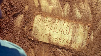 Although the box car at the end is rather heavy on the Holocaust imagery, there are overt references to the persecution and victimisation of the Native American population. The plaque on the car reads “Sierra Pacific Railroad.” This is an evocative name. With the press westward in the middle of the nineteenth century, “Pacific” was on everybody’s mind. Pacific Union and Central Pacific competed to see who would be the first to complete a transcontinental railroad, encouraged by the Pacific Railroad Acts. (Central Pacific’s building of the rail through the Sierra Nevada mountains being a significant moment in that push west.)