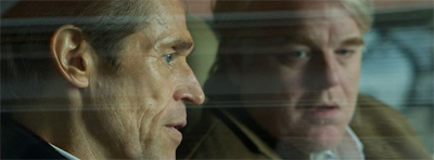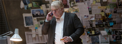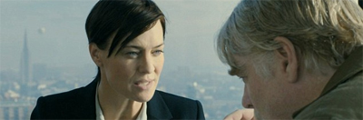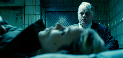 He drinks; he smokes. The film’s soundtrack is underscored by the sound of Bachmann breathing heavily, as if struggling against all the burdens that the world heaps upon him. Hoffman is great, bringing Bachmann to life as a fully-formed and nuanced character. He moves like a wounded man, recovering from some injury that is not necessarily physical. He is optimistic, but he is not foolhardy. Hoffman makes it clear that Bachmann might wish for the best, but he is also a veteran of world that trades in cynicism and skepticism.