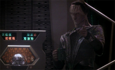 As with The Search, Part I, Quark stresses how much he respects the Constable. “There’s something very wrong going on and this is the safest place on the whole station. I think I’ll stay right here.” To be fair, Odo does repay the compliment later on, even if he backtracks once the pair are out of danger. One of the more consistently fascinating aspects of the relationship between Quark and Odo is that way that writers allow the least likeable and scrupulous of the two to be the most open and honest about their dynamic. There’s a sense that Quark is more aware of their friendship than Odo, and that Odo might even be hiding it from himself.