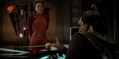 This, rather naturally, glosses over the rather uncomfortable subtext to Dukat’s interest, as Nana Visitor herself noted in The Deep Space Nine Companion: