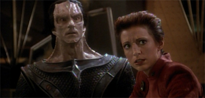 There are lots of other nice exchanges as well. The pairing of Quark and Odo is hardly surprising, but there’s a reason that the show keeps coming back to the two of them. Rene Auberjonois and Armin Shimerman play very well off one another, and their odd-couple relationship is decidedly charming. As ever, Quark is the first of two to admit a grudging fondness for his rival, readier than Odo to acknowledge their personal relationship.