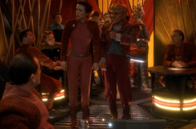 That sense bleeds into the subplot as well. While perhaps not as immediately dangerous as the “Quark lets something dangerous on to the station” plots from the first two seasons, the subplot of Meridian features Quark trying to produce and distribute pornography using the likeness of the station’s highest ranking Bajoran officers. There should be consequences for Quark beyond the lame end-of-episode punchline. Kira should try to force Quark off the station; Odo should clamp down harder on him; even Tiron should follow through on his threat to humiliate and destroy the Ferengi.