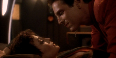 There are really two key problems with Deep Space Nine and its attempts to do “sex” stories – whether comedic or dramatic. The most obvious is that the show isn’t really sexy enough to pull them off. This is a syndicated network show in the nineties. It’s a franchise that prides itself on being family friendly. Nobody can get too naked or sensuous. This is the same franchise where The Emissary made it look like Worf got K’Ehleyr pregnant through their clothes.