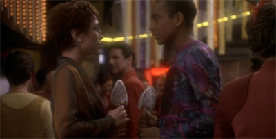 Still, despite this, there’s some stuff to like in Fascination, albeit more in concept than in practice. There is something quite nice about the way that Deep Space Nine could do these sorts of “day in the life” stories, where there wasn’t a massive threat or impossibly high stakes. Fascination is essentially set on the station during a bank holiday, and it’s great to get a sense of the station as a larger community rather than a strictly strategic outpost.