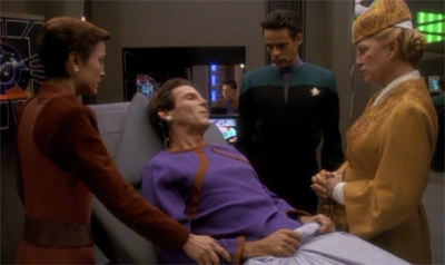 But enough about all that behind-the-scenes nonsense. Life Support really doesn’t reflect the massive shifts taking place behind the scenes. In fact, it’s very much a middle-of-the-road Deep Space Nine episode that has many of the problems that have dogged the show in the past. There’s no real sense that the show is throttling up as it did with The Maquis or The Search. Instead, it just sort of is. Life Support feels like a bunch of half-decent ideas haphazardly bundled together, with no idea of how to make them gel.