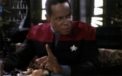 Even before we get into the details of the plots themselves, this is a recipe for disaster. Life Support never seems to decide that one plot is more important than the other. So we get the two elements cutting across each other for most of the episode, leading to considerable whiplash. One of the more awkward transitions of the episode cuts from Sisko offering heartwarmingly wholesome family advice to Vedek Bareil screaming in agony as he dies.