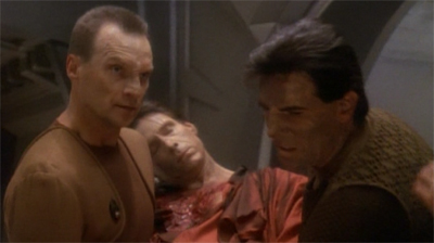 The result is a plot that feels far too fractured. Stripping out the plot involving Jake and Nog might have helped, allowing Ronald D. Moore to split the plot between the two regulars most involved. We could have had a bit more of Bashir’s wrangling over the right course of action, and a bit more of Kira grieving “in [her] own way, in [her] own time.” Unfortunately, Life Support feels like it’s being pulled too many directions at once, and the result is unsatisfying.