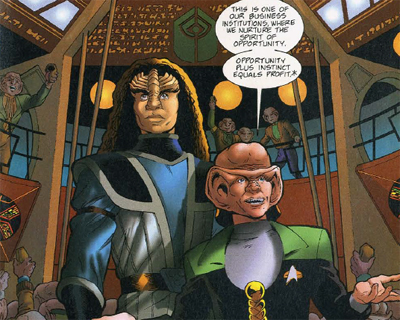 Filed under: Comics, Deep Space Nine | Tagged: aron eisenberg, deep space nine, Ferengi, klingons, malibu comics, nog, Quark, rules of diplomacy, star trek |