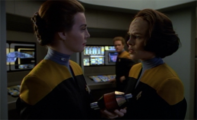 While Code of Honour was an embarrassingly racist moment from the first season of The Next Generation, the series had issues with its characterisation of female characters through to its final season, to the point where Beverly Crusher’s big story of the final season (Sub Rosa) involves her having sex with a candle. While Deep Space Nine did better, it’s still notable that their later mirror universe episodes were preoccupied with the notion that “girls kissing girls are hot” and produced episodes like Profit and Lace.
