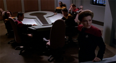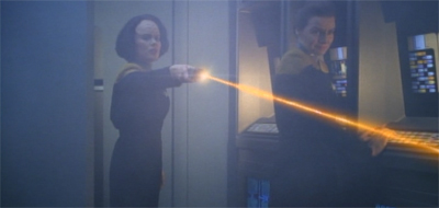 Television is a clumsy business, and you have to expect inconsistencies. Doubly so with Star Trek, a merchandising giant which is micro-managed to a stifling degree; big corporations aren’t known for taking unneeded risks, and the result is you have a cast of posable action figures instead of characters (Have you seen that YouTube interview of Bill Mumy where he tells of being raked over the coals for adding ONE syllable to his dialog without clearing it with upstairs?). I can certainty see the logic in Janeway’s heavy-handed decisions over the years, or even Tuvok’s pragmatism here. The problem is that the writers didn’t care to draw a logical line between what the characters did and why they did it. Just writing in a simple scene of motivation proved too much for the writers to handle. The result the senior staff does whatever the episode requires them to, with little explanation, and then they’re back to the default setting by the end. Action figures instead of characters.
