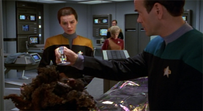 No, it was nothing like that. After all, for the plot to work, the viewer has to believe that somebody on Voyager would willingly give the Kazon the technology. So it has to be relatively harmless. It ultimately is. Torres is horrified when she figures out what caused all of this death and destruction. “Of all the things to die for,” Torres reflects. “It’s a food replicator, or at least it was trying to be.” Janeway offers, “We may take replicators for granted, but imagine what it would mean to a culture that doesn’t have this technology.”