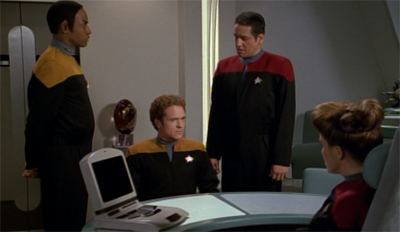 State of Flux also suffers because the outcome is obvious. It isn’t so much a mystery as a march towards a resolution. There may be some ambiguity about Seska’s guilt, but only the faintest amount. While Seska has a history of insurrection, Carey isn’t defined well enough to make a credible bad guy. Sure, he was in on the plot in Prime Factors, but only passively. What good would helping the Kazon do him? How would it make up for being passed over for Torres in Engineering?