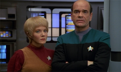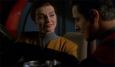 Seska is just the best. If we’re being honest, she’s the only example of inter-continuity with DS9 working to VOY’s advantage. There is a good deal of inside humor for Trek lovers. in “Destiny” when Tracy Scoggins (as Gilora) got a case of the vapors from Chief O’Brien’s meddling. They are turned on by argumentative males.