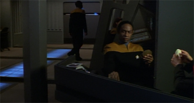 And yet, despite these fundamental problems, there’s a lot to like about State of Flux. For one thing, it does make use of recurring non-regular cast members, even if they aren’t ever really used like this again. It is nice to get a sense that life on Voyager exists beyond the characters whose names appear in the title credits. It’s also quite nice to see a story broadening out to examine a character who isn’t a paragon of integrity and virtue.