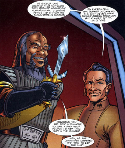 To be fair, this is a rather elegant solution to the problem of recruiting a Voyager actor to write for Deep Space Nine. At the same time, it feels like a parody of Star Trek spin-off storytelling. Much like the expansive Star Wars universe, there is a sense that virtually every character ever to wander on camera has their own history and back story. mirror!Tuvok may only have a couple of lines in a less-than-stellar episode of Deep Space Nine, but he’s still the central character of a two-part comic book story.