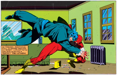 One of the things we’ve done, in dealing with his power, is tried to show the cost in energy. He just can’t go running off at the speed of sound all day and not pay for it. He has to eat enormous quantities of food, carbohydrates in particular. He drinks huge amounts. And when he really exerts himself, he’ll end up sleeping for 16 hours at a stretch.