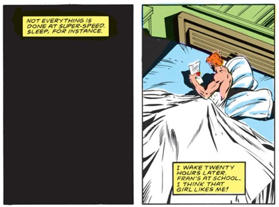 While there are pretty significant physics-related differences between travelling 705mph and the speed of light, it isn’t as if a person moving 705mph is proportionally more relatable to the reader. Besides, it isn’t really a limit, because all that a writer or artist has to do is show a panel of Wally eating lots of burgers after doing a massive stunt. It can also be used for cheap drama, like having Spider-Man run out of webbing fluid at an important point.