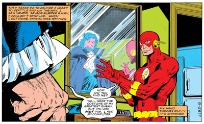There is also a sense that Mike Baron is trying a little too hard to make The Flash a grim and gritty comic, reflecting contemporary tastes. At one point, Vandal Savage presents Wally with a box containing a human heart. When Wally asks Savage why he is so brutal and violent, Savage responds with pseudo-philosophical mumbo-jumbo. “I cannot die, therefore I kill.” What does that even mean? That’s just gibberish trying to sound deep.