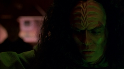 1. I never quite grasped why every Klingon on VOY had to SPIT!…OUT!….THEIR LINES!…THROUGH CLENCHED TEETH!! Didn’t this run pretty much parallel to DS9’s timeline? That show still featured soft-spoken Klingon aristocrats, politicians, and litigators. Heck, we even get to catch up with the three K’s, Kang, Koloth and Kor, and they’re just as gentlemanly and shrewd as they were in Kirk’s day.
