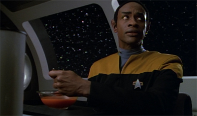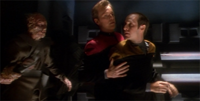 As an aside, it’s a nice touch – if entirely coincidental that “nameless Talaxian prisoner” would be revealed to have almost a perfect double towards the end of the seventh season.